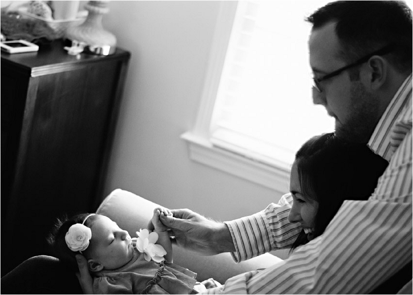 Caroline is now one month old. I’ve loved seeing all the pictures Matt and Nicole post of her on Instagram and Facebook, and getting to meet their adorable Caroline this past weekend was absolutely wonderful. While we were at their house for their session, we were joking that no matter how hard they tried, she wasn’t going to show one of her trademark big grins until just after we left. And, of course, that’s exactly what happened.
