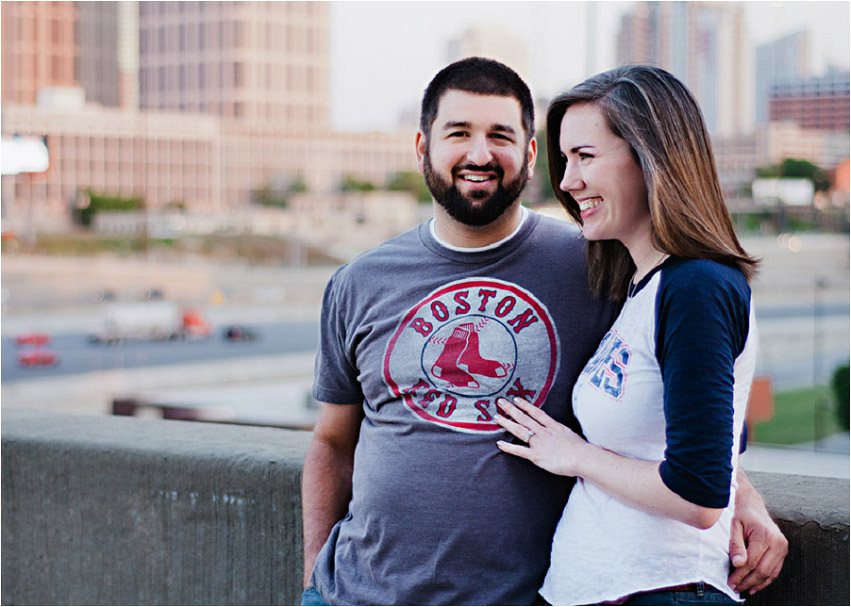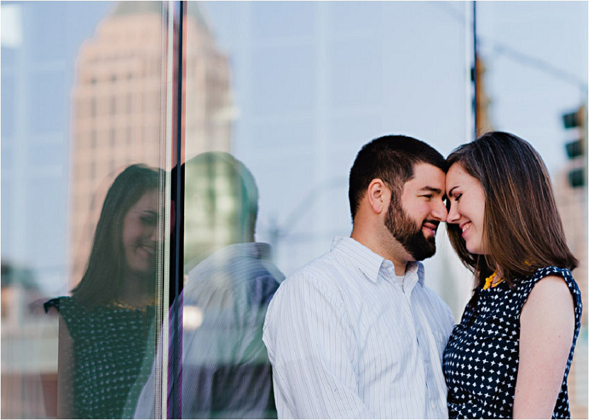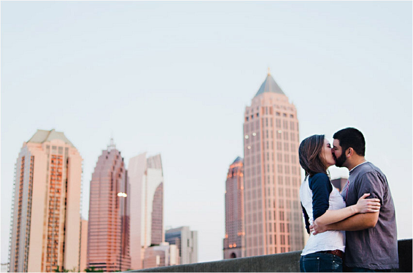 Melanie and Justin have been good friends of ours for a while now, and I was really excited when she asked if we would do their engagement pictures. We originally planned on an evening in January, but when what was chance of rain turned into a rather cold utter monsoon, we decided to reschedule. It was definitely worth it in the end. We spent this past Sunday in Atlantic Station with them for their engagement session, and it couldn’t have been a nicer evening. Sometimes having a little patience and waiting for the right time isn’t the worst thing in the world. Because their session? Well, it was absolutely beautiful.